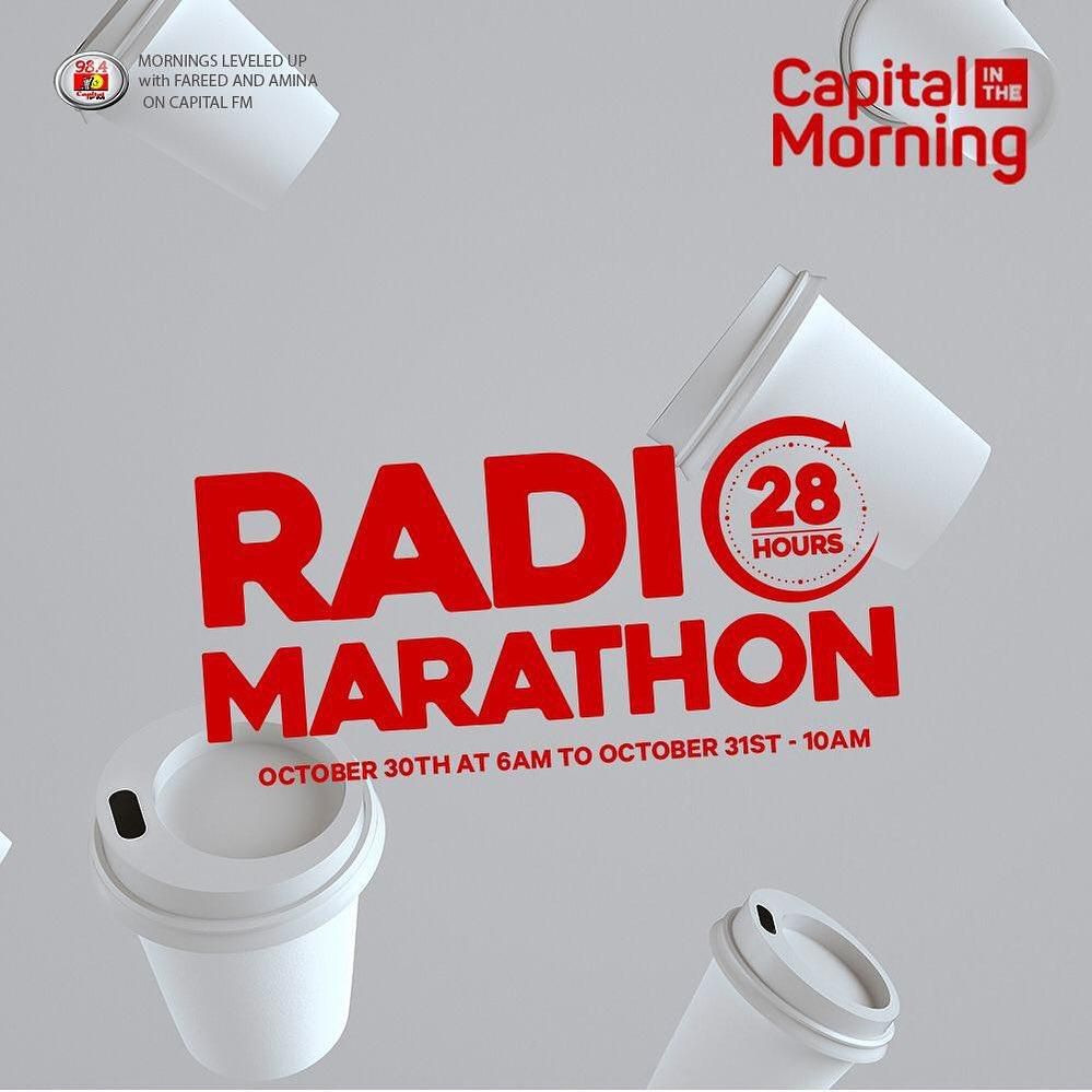 “We have a lineup of former and current Capital presenters coming as “pace setters” throughout the #28hourmarathon. On the 12th October in Austria, Vienna, Eliud Kipchoge set out to make it known that No Human Is Limited and became the first human to run a full 42km marathon in under 2hrs. To celebrate the record breaking hero and to honour him, Capital FM's morning show hosts Amina and Fareed will break the Kenyan record for the longest running hosted radio show,” read tweets from Capital.