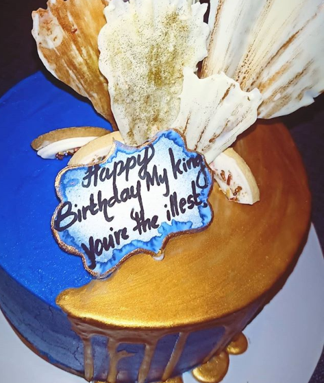 She also posted a picture of a beautiful cake written happy birthday my king you are the illest. Her caption read, keeping it real and the beat goes on.
