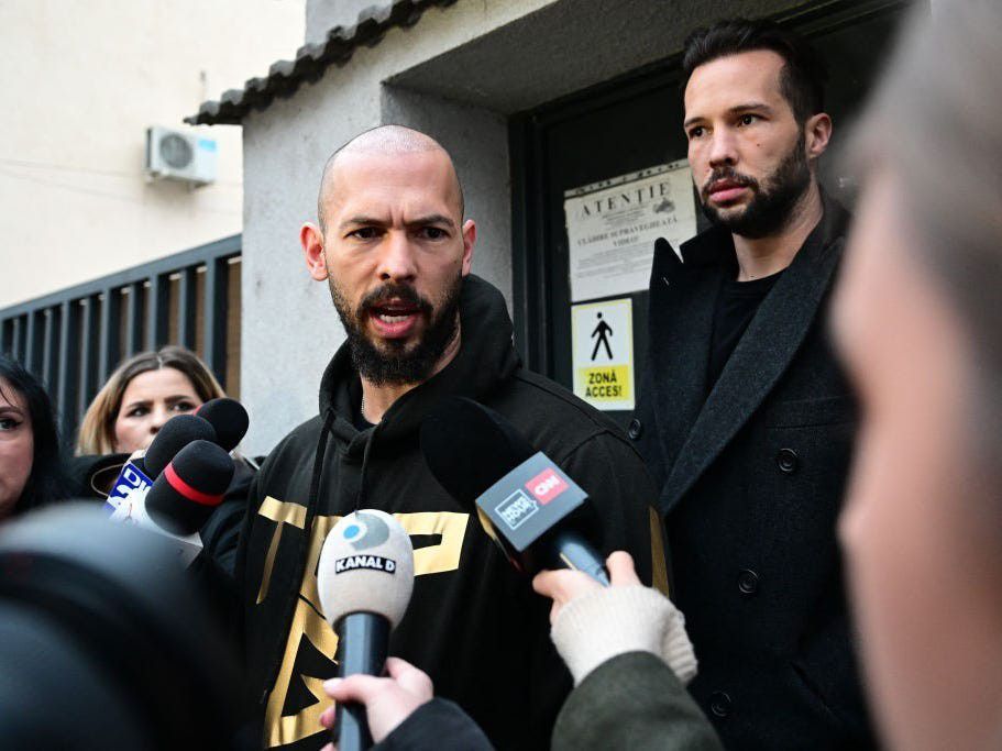 Andrew Tate (left) and his brother Tristan leave court after losing their appeal to be released from jail in Romania.Andreea Campeanu/Getty Images