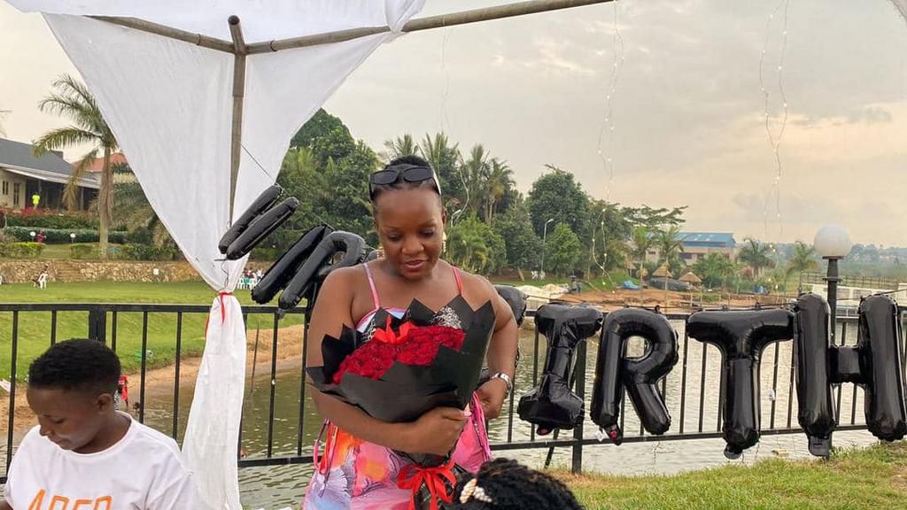 Bukedde TV presenter Bruno Betty is trending online after netizens noticed something amiss at a surprise birthday party for his spouse, identified as Princess Teddy Nassolo, over the weekend.