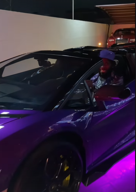 Burna Boy wore a smile inside the purple vehicle which now adds to the long list of luxury cars the star owns.