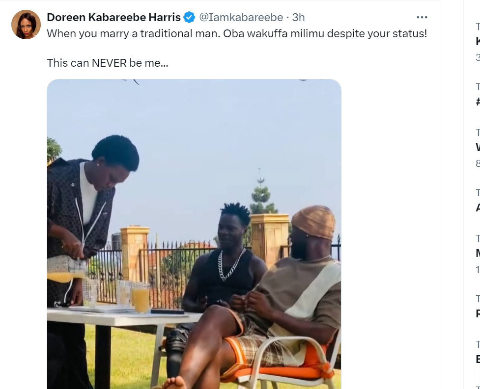 "When you marry a traditional man. Oba wakuffa milimu despite your status!" Kabareebe posted on X. "This can NEVER be me..."