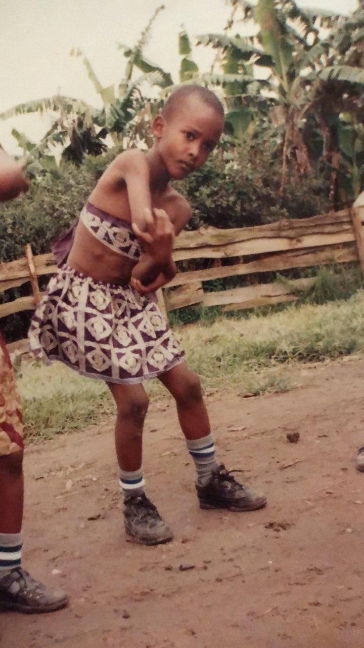 In the picture, Mugume is wearing a skirt and he revealed that he was participating in primary school drama.