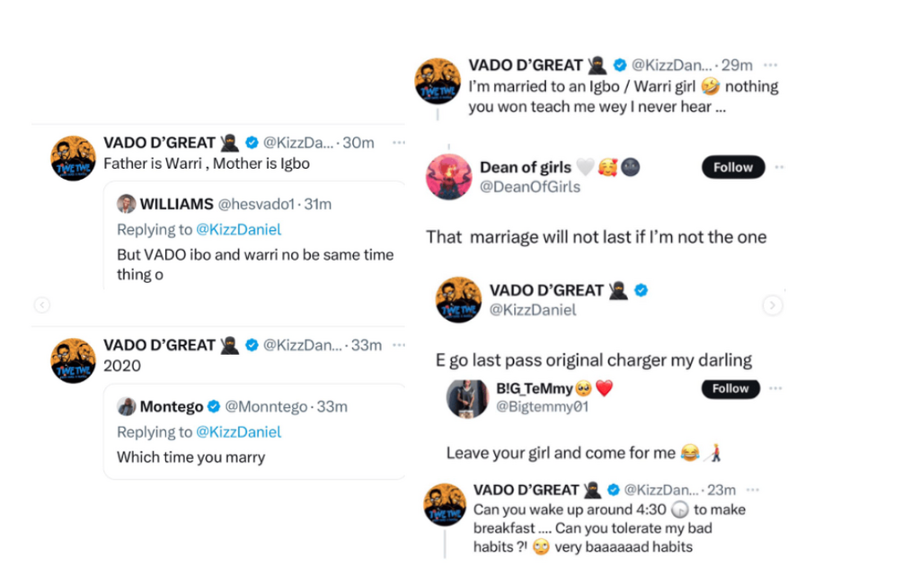 Kizz Daniel's Banter with his fans on X [X/KizzDaniel]