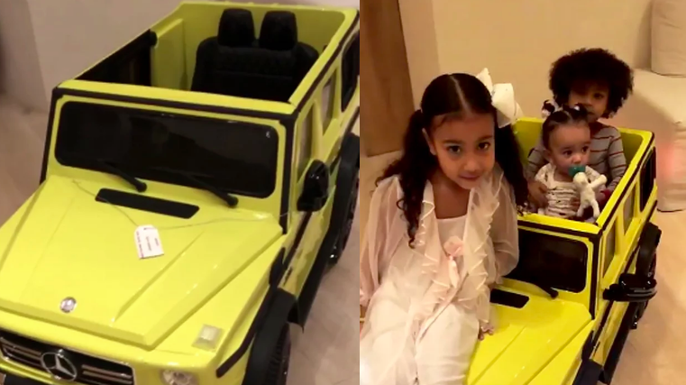 Kourtney Kardashian surprised her niece, Chicago West with a mini Neon Mercedes G wagon on her first Birthday. The G Wagoin was a small version of the Car Kanye west had Bought Kim Kardashian in August last year.