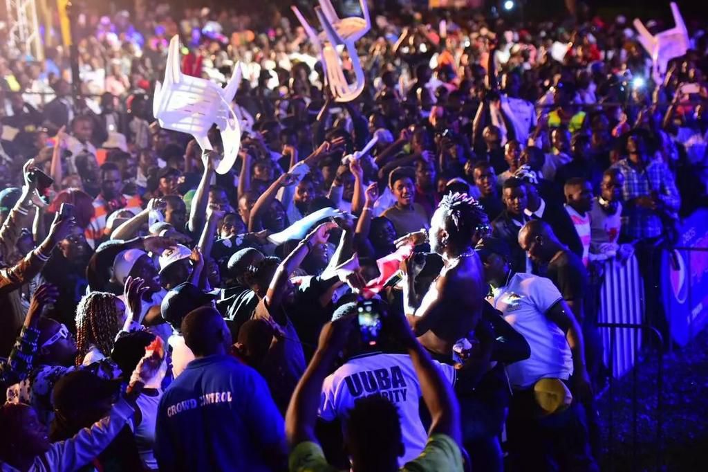 Fefe Busi made a dramatic entrance, arriving by yacht to the mainland, announced by movie translator VJ Junior. His performance included a mix of his popular songs such as "Kaako," "Romantic," "Bagala Feffe," "Influencer," "Onkuba," "Fako," "Ekyana," "Love Yo," "Buzibu Bwo," "Wavako," and "Kirabo," among others.