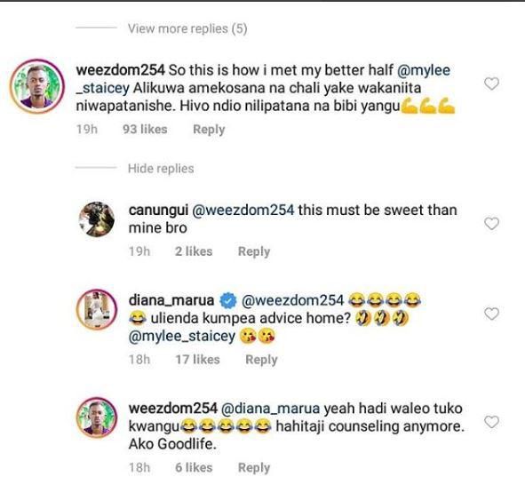 “This is how I meet my better half. Alikua amekosana na chali yake wakaniita niwapatanishe. Hivo ndio nilipatana na bibi yangu” read Weezdom’s post.