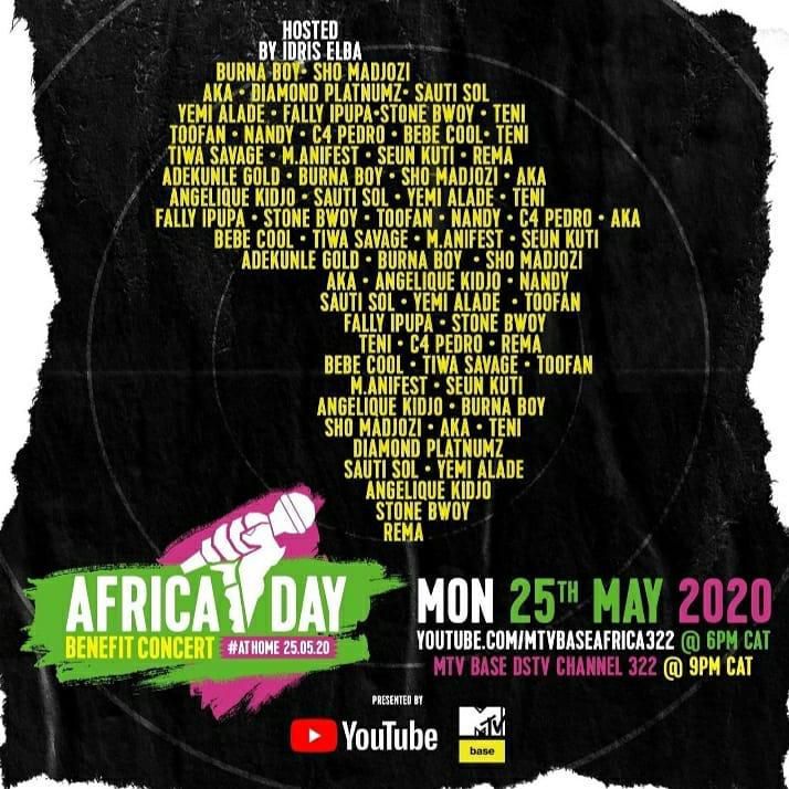 The concert is set to go down on May 25th, 2020 with East Africa being represented by Sauti Sol, Diamond Platnumz, Bebe Cool and Nandy as actor cum musician Idris Elba plays host of the Virtual concert.