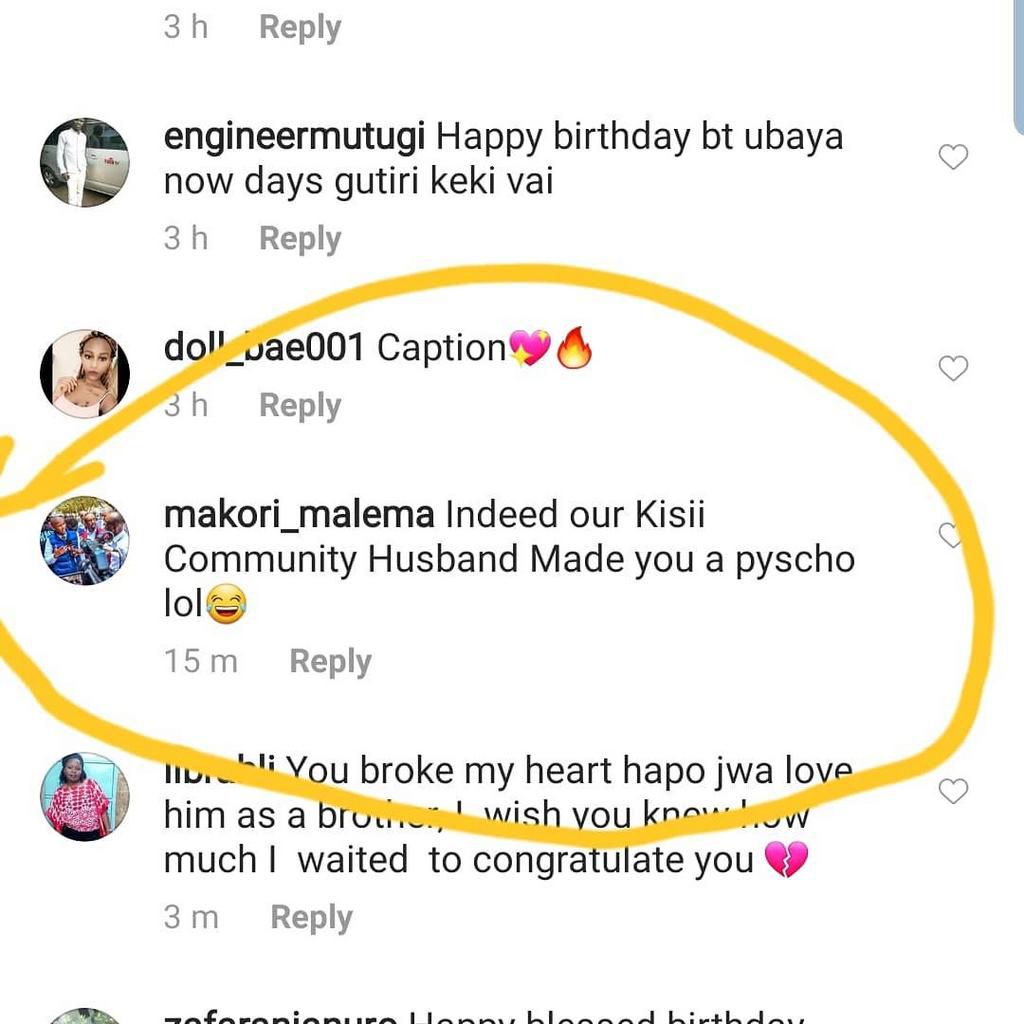 In a post seen by Pulse Live, the fan identified as Makori Malema commented on the news anchor’s post saying, “Indeed our Kisii Community Husband Made you a psycho lol.”