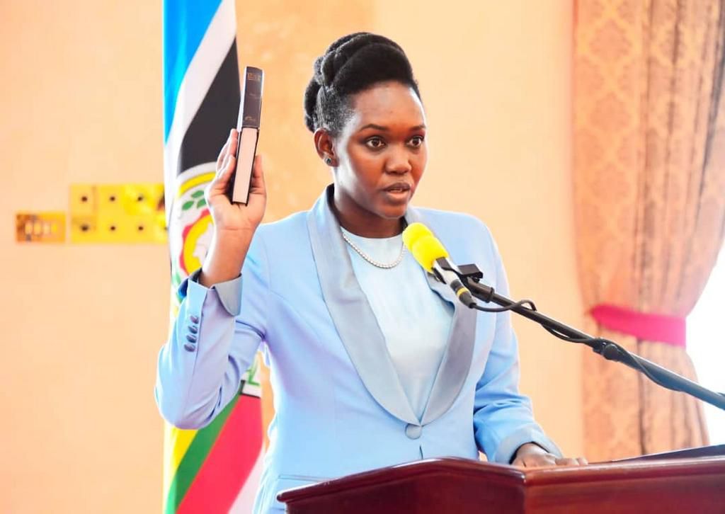 The youthful minister was sworn in on Wednesday evening along with the other new cabinet appointees. The event was presided over by Chief Justice Alphonse Owiny-Dollo and witnessed by President Yoweri Museveni at State House Entebbe.