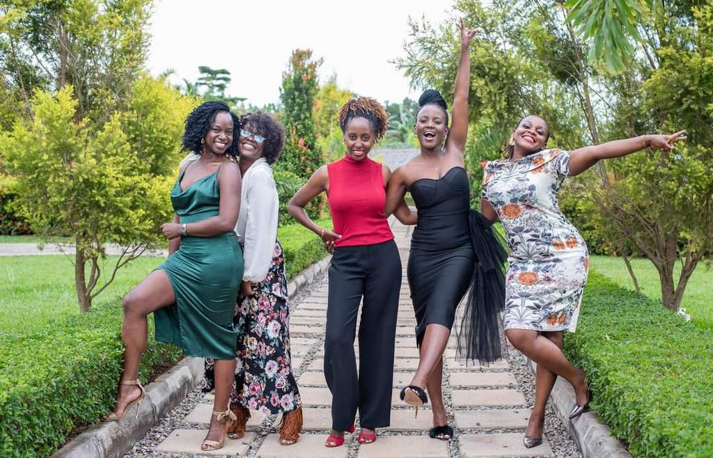 L-R: Angie Kemi Omeke, Rachael Mwine Arinaitwe, Rosette Segujja, Manuela Mulondo and Pumla Nabachwa; the outgoing cast of Bump Love