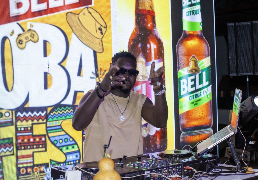 DJ Joel playing at the Bell ObaFest takeover in Gulu City