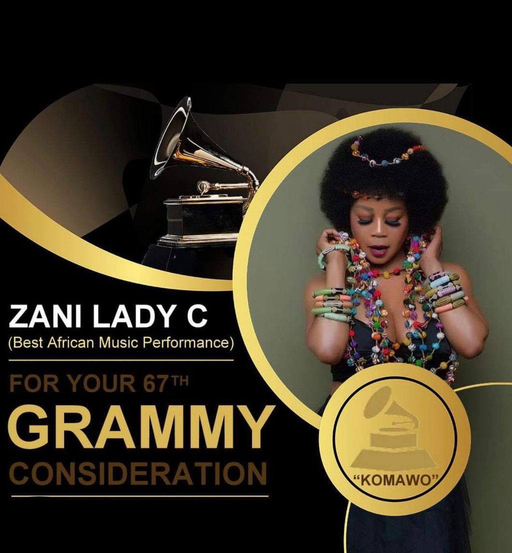 Zani Lady C’s fans are eagerly awaiting the Grammy announcement and are rallying support for her song Komawo, available for streaming on platforms such as YouTube.