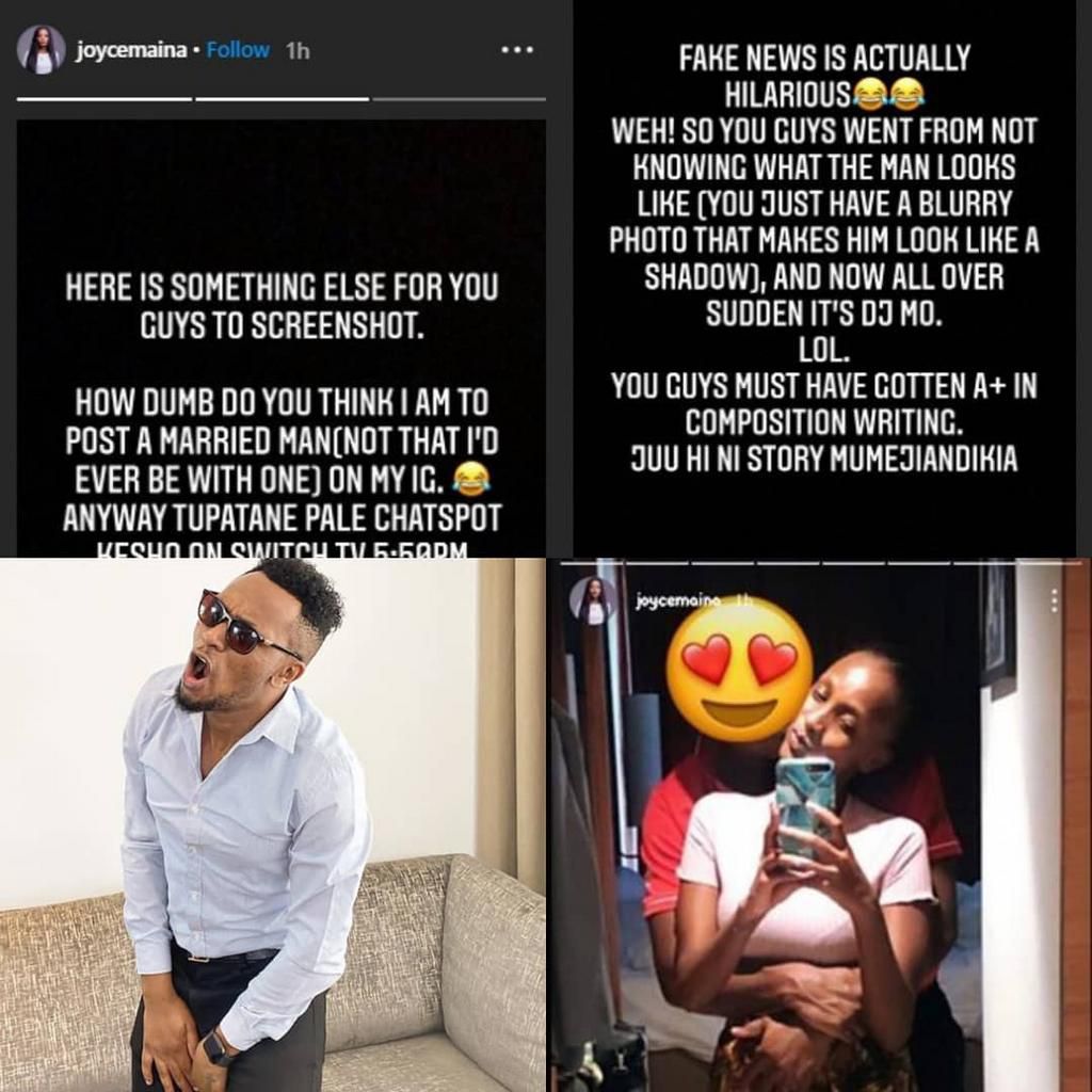 Switch TV presenter cum actress Joyce Maina has refuted claims of dating DJ MO, terming them as fake news after a week of speculations.