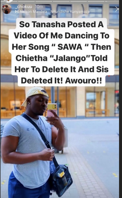 “So Tanasha posted a video of me Dancing to her song SAWA, then Chietha Jalang’o told her to delete it and sis deleted it! Awuoro!!” wondered Mpenzi Chokuu,