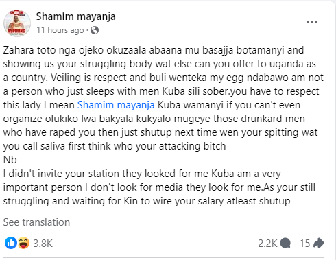 In a scathing Facebook post on Monday evening, Mayanja called out the Sanyuka TV host and DJ for “having fatherless babies” and spotting a “struggling body.”