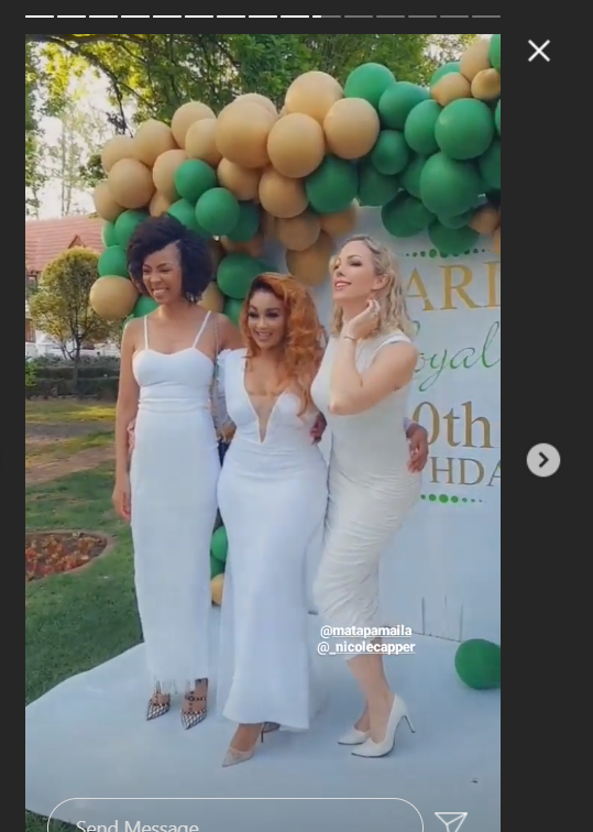 The exquisite Party was graced by her family members and close friends among them Pearl Thusi aka Queen Sono, DJ Zinhle Jiyane, Adams Ddumba, Nicole Capper, Ashley Ash Talal, and Matapa Maila among others.