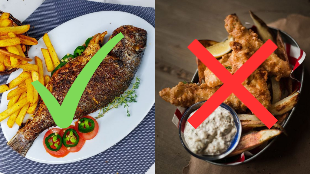 Avoid crumbed or battered fish and choose the grilled fish. Keep your chips serving to the low and boost the meal with a big homemade salad or fresh veggie serving.