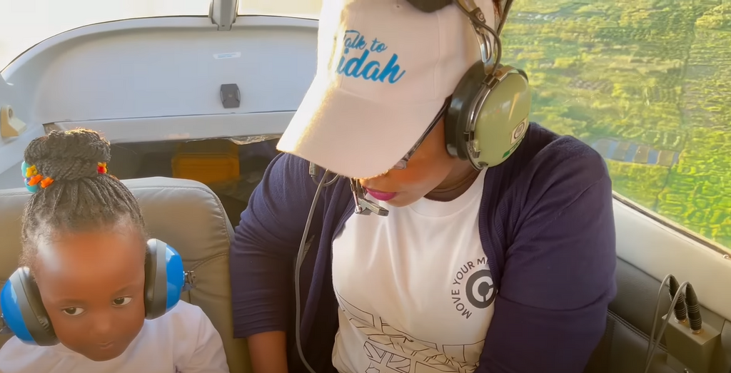Nakazibwe took her three daughters for their first flying experience over the weekend. The family was dressed casually in sneakers, t-shirts, and jeans. They were given safety vests before their flight and had to take them off before climbing into the aircraft 5X-KAT. Nakazibwe's two daughters went first, followed by Nakazibwe and Briella. Singer Bruno K is also seen towards the end of the day.