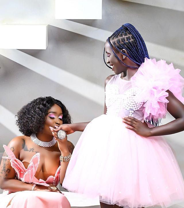 Nwagi's dress and shade of pink capture elegance and maturity, while young Destiny's dress and pink shade are budding and twirling childhood innocence.