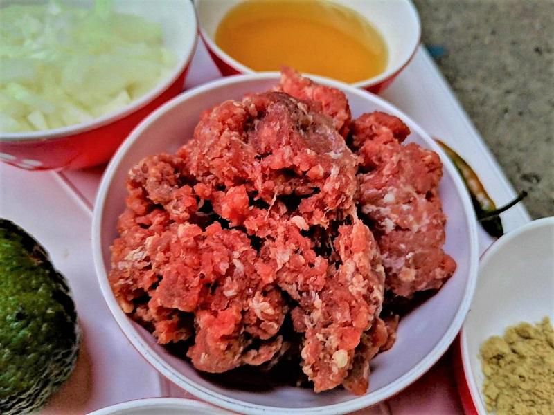 - In a saucepan mix the minced beef, onion and salt. Cover with a lid and cook over medium heat for 10 minutes before you stir it.