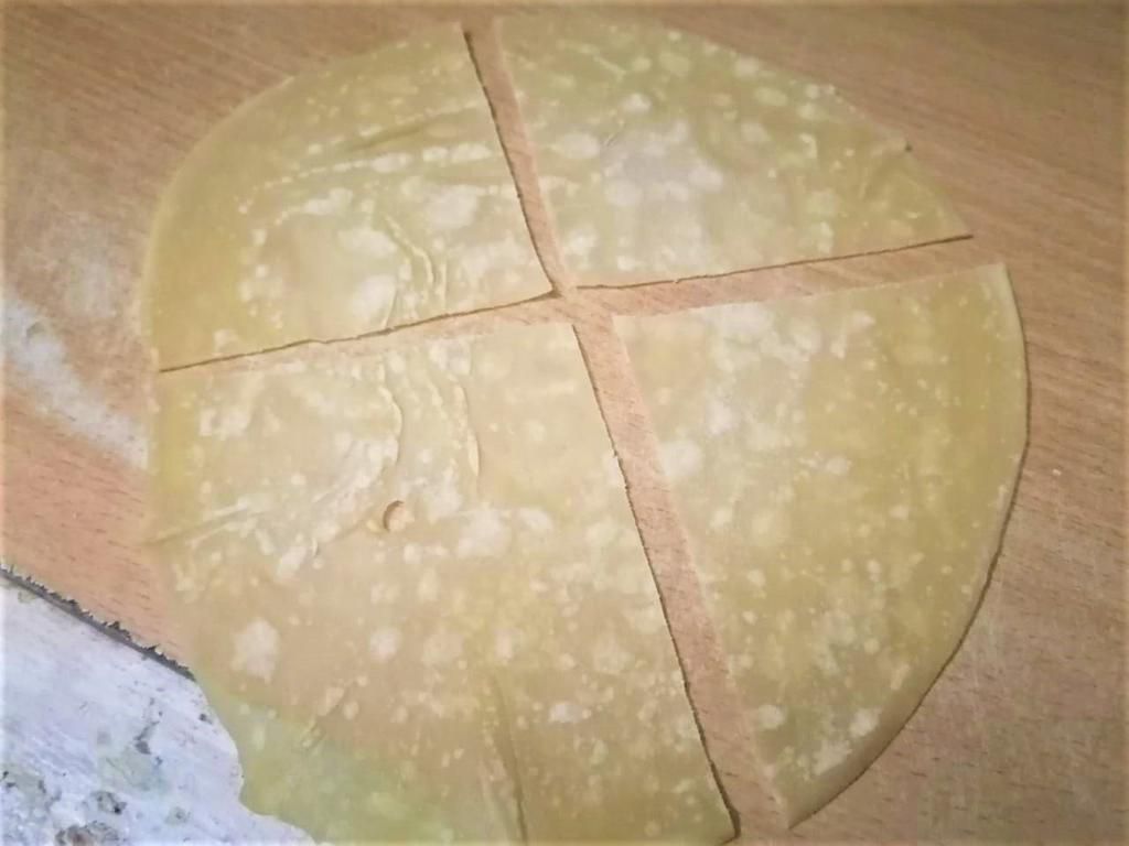 - Add 3 tablespoons of water to the remaining flour to make a thick paste that will be used as glue for the samosa shells.