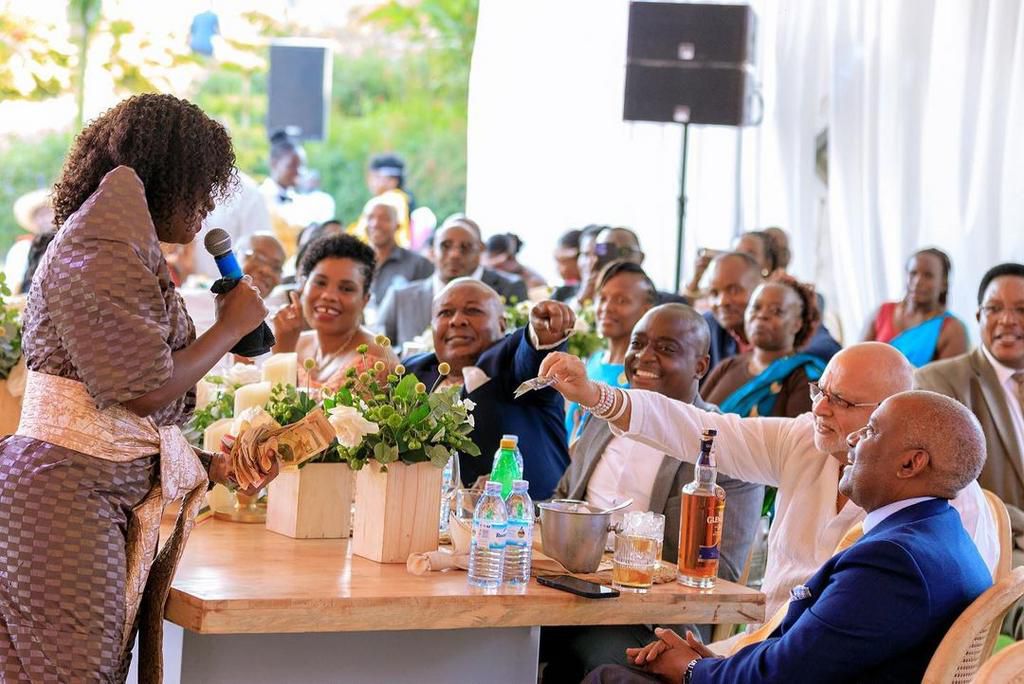 Godfrey Kirumira Kalule, who is the Honorary Consul of Namibia to Uganda, a businessman, real estate developer, and philanthropist, was first in line to hand the singer money in Shs50,000 notes. He also looked like Kanyomozi's chaperone to his mates to cough up money.