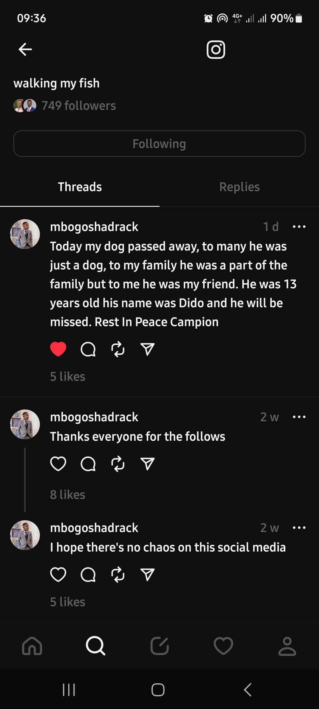 Shadrack Kyagulanyi posted his goodbye message on his Threads account talking about the dog.