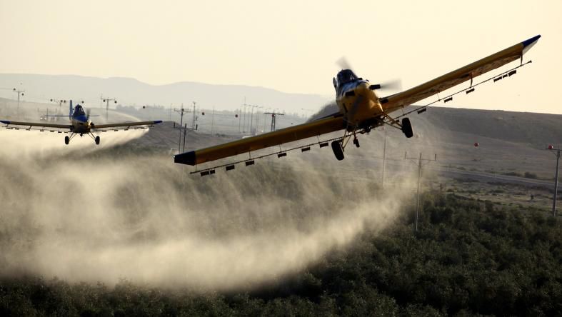 Aerial spray of pesticides