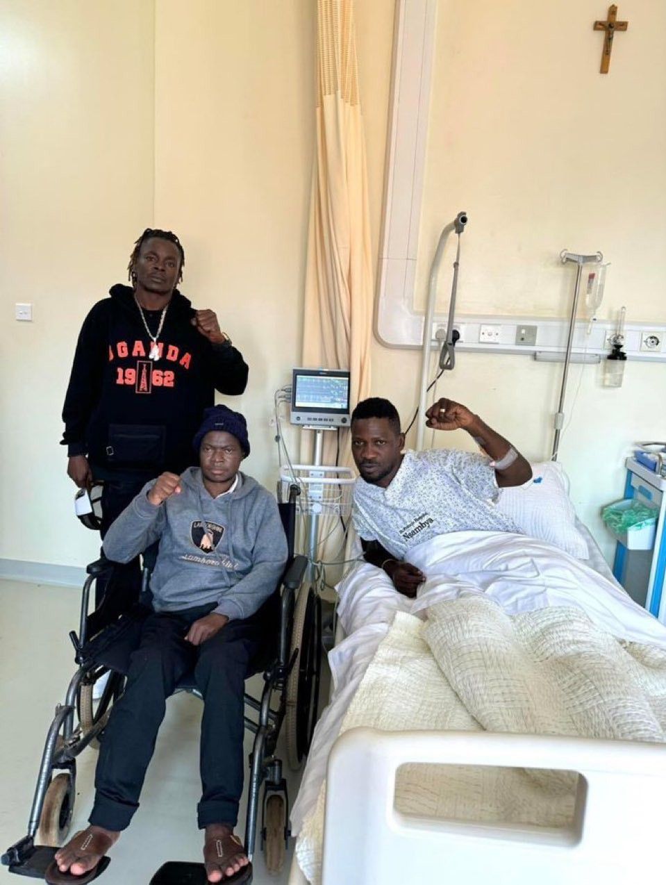 In the hospital, Bobi Wine was joined by other leaders including Muhammad Ssegirinya