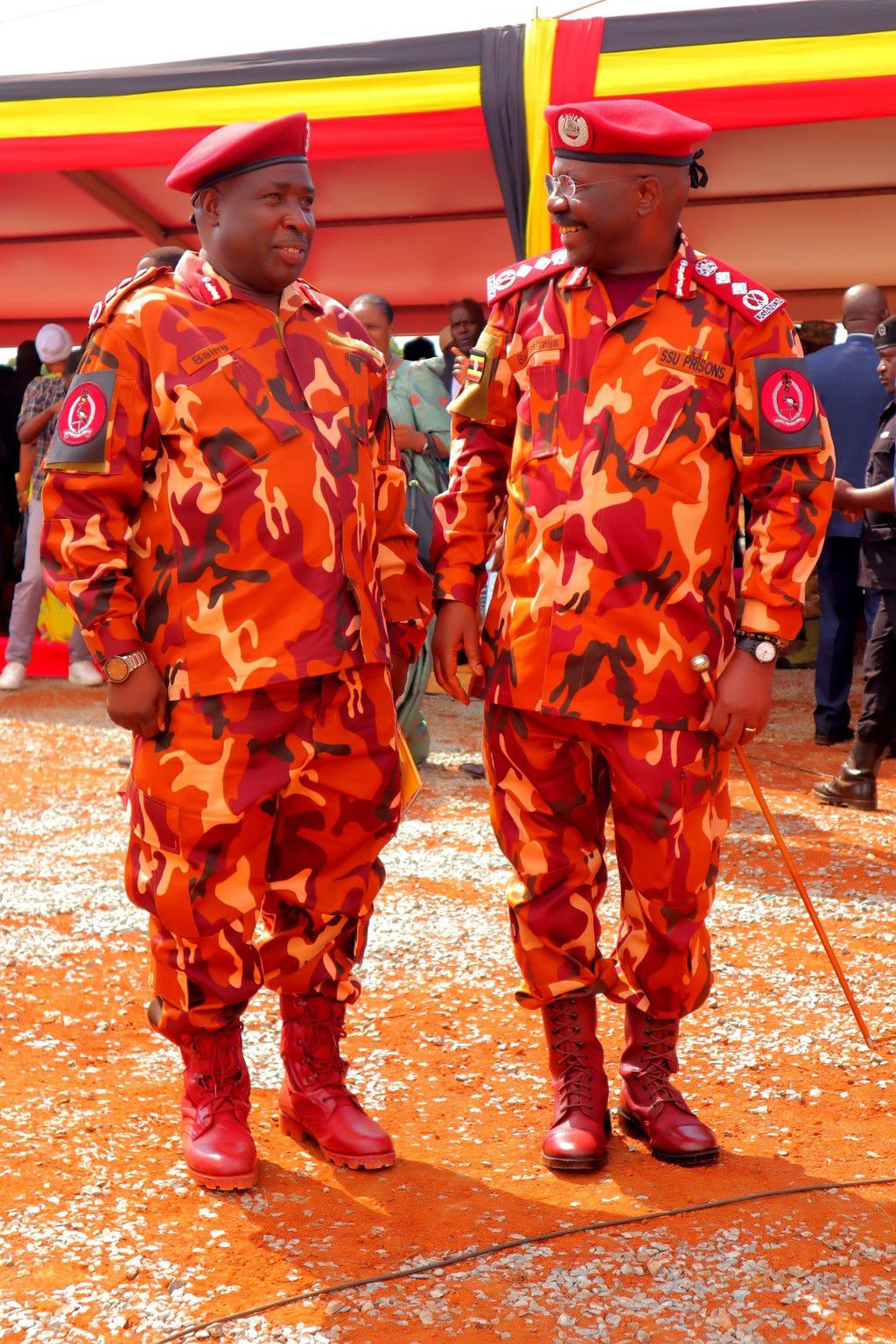 UPS spokesperson Frank Baine (L) and Commissioner General Johnson Byabashaija in the new uniform