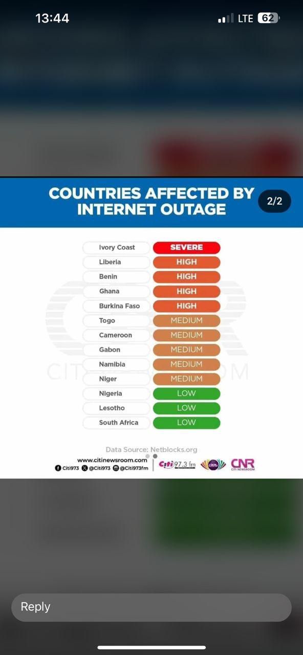 This begs the question of which African countries are hit the hardest by the internet outage. According to Citinews Africa, there are four categories of the severity of the internet outage, these are severe, high, medium, and low.
