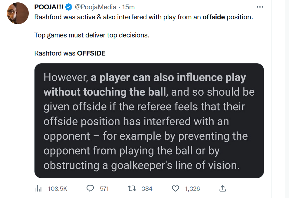 However, the linesman initial decision of offside was overruled as the referee awarded the goal.