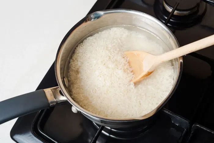 Cooking rice on high heat or without a lid can cause uneven cooking or burning. Bring the water to a boil, then reduce to a simmer and cover tightly. Avoid stirring during cooking, as it can activate starch and make the rice gloppy.