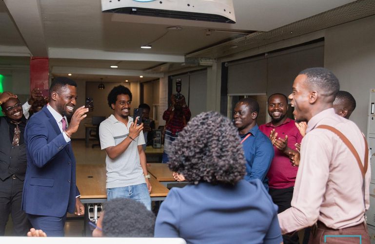 In scenes rarely witnessed in Ugandan media houses, dozens of NBS TV staff were seen clamouring to take selfies with Bobi Wine.