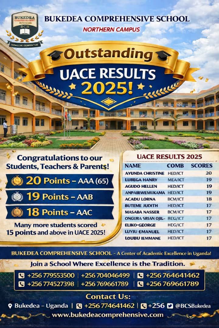 “Warm congratulations to the BCS family!” Among captioned an artwork highlighting the results achieved by Bukedea Comprehensive School’s Northern Campus.