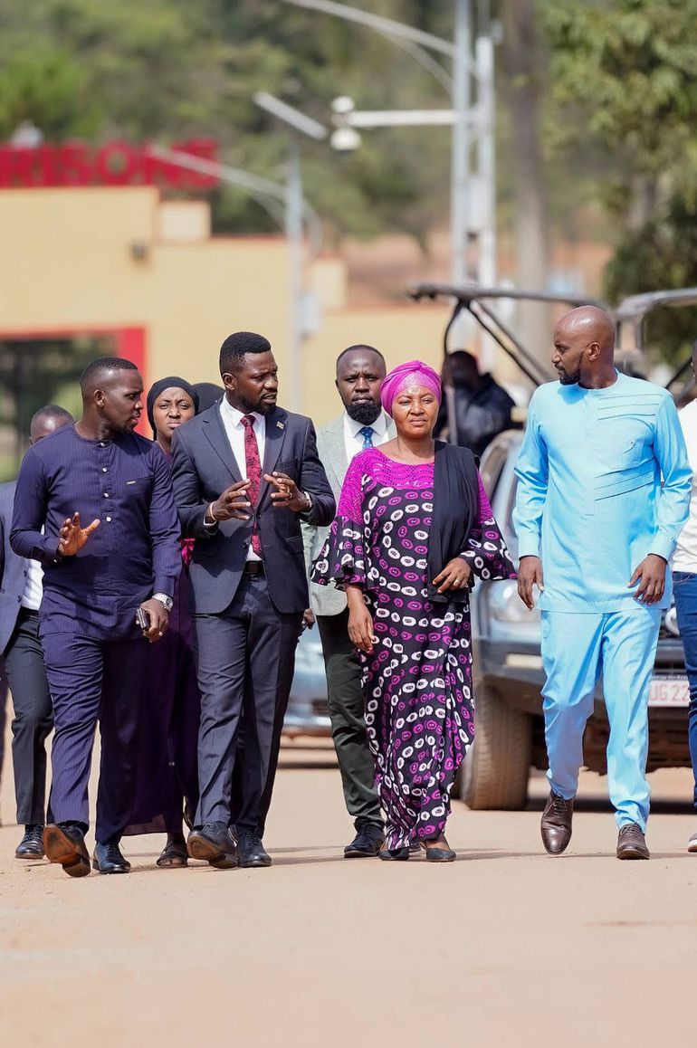 Bobi Wine, accompanied by NUP Secretary General David Rubongoya, Leader of the Opposition Joel Ssenyonyi, former opposition leader Winnie Kiiza, Alice Alaso, and other opposition figures, visited Luzira Prison this morning to check on Besigye.
