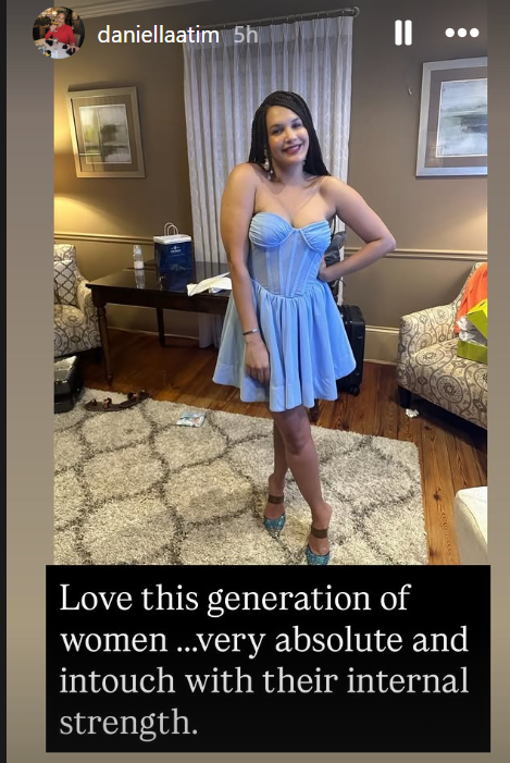 "Love this generation of women... very absolute and in touch with their internal strength," she posted on her Instagram stories.