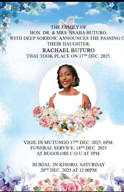 The family of former Minister of Ethics and Integrity, Dr. Nsaba Buturo, has announced the death of their daughter, Rachael Ainembabazi Buturo. She died on December 17, 2025.