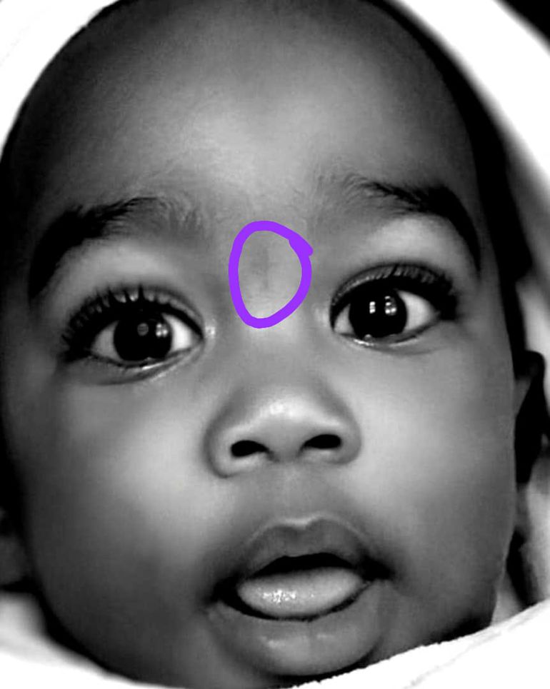 The images showed the clearly visible cross birthmark on the boy’s glabella, the area between the eyes and above the nose.