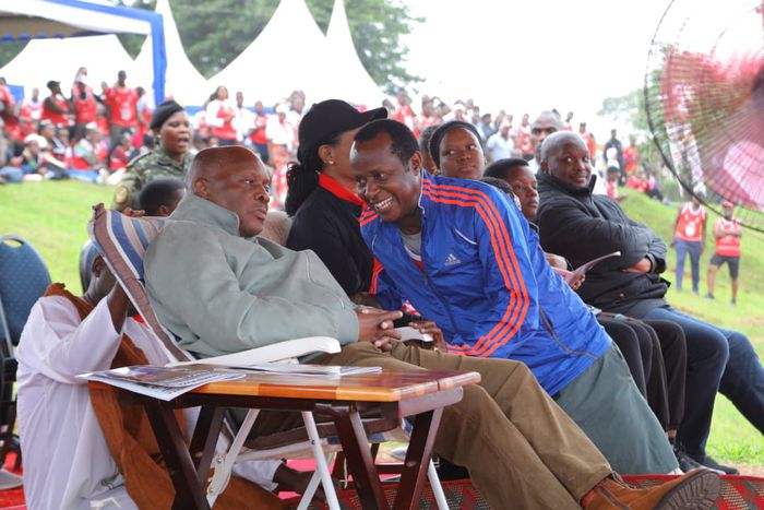 The Luganda post accompanied a photo showing Prince Wasajja chatting with Kabaka Ronald Muwenda Mutebi II during the Kabaka Birthday Run at Lubiri in Mengo on April 12, 2026.