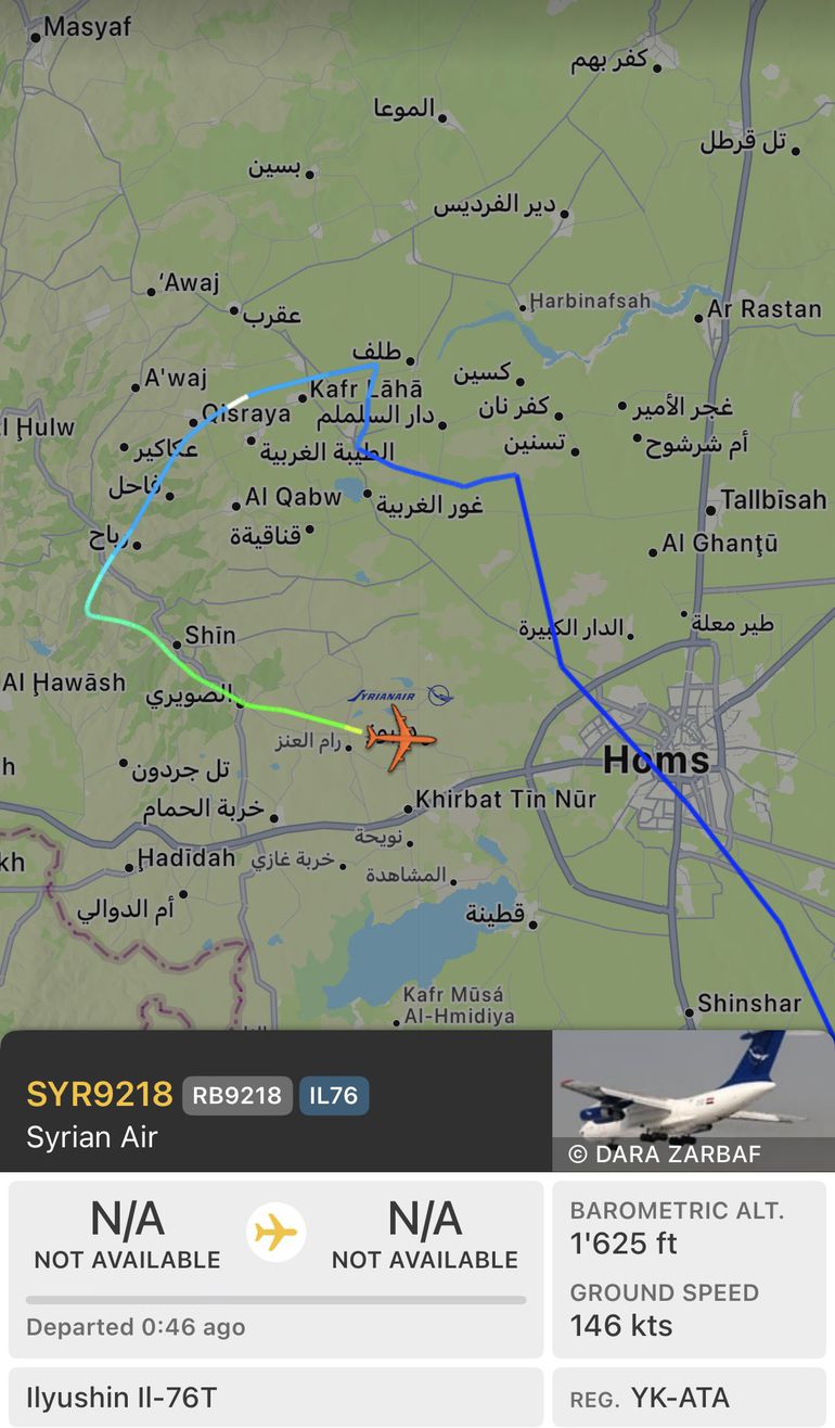 According to FlightRadar, the plane was an Ilyushin-76, a large military transport aircraft, which was suspected to be carrying President Assad.