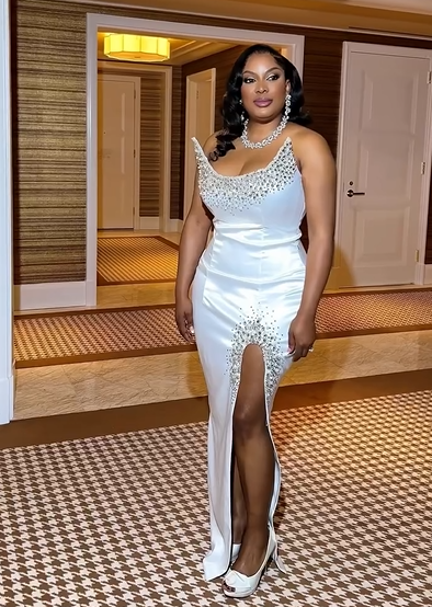 Zawedde opted for a breathtaking, floor-length white satin gown for the occasion.