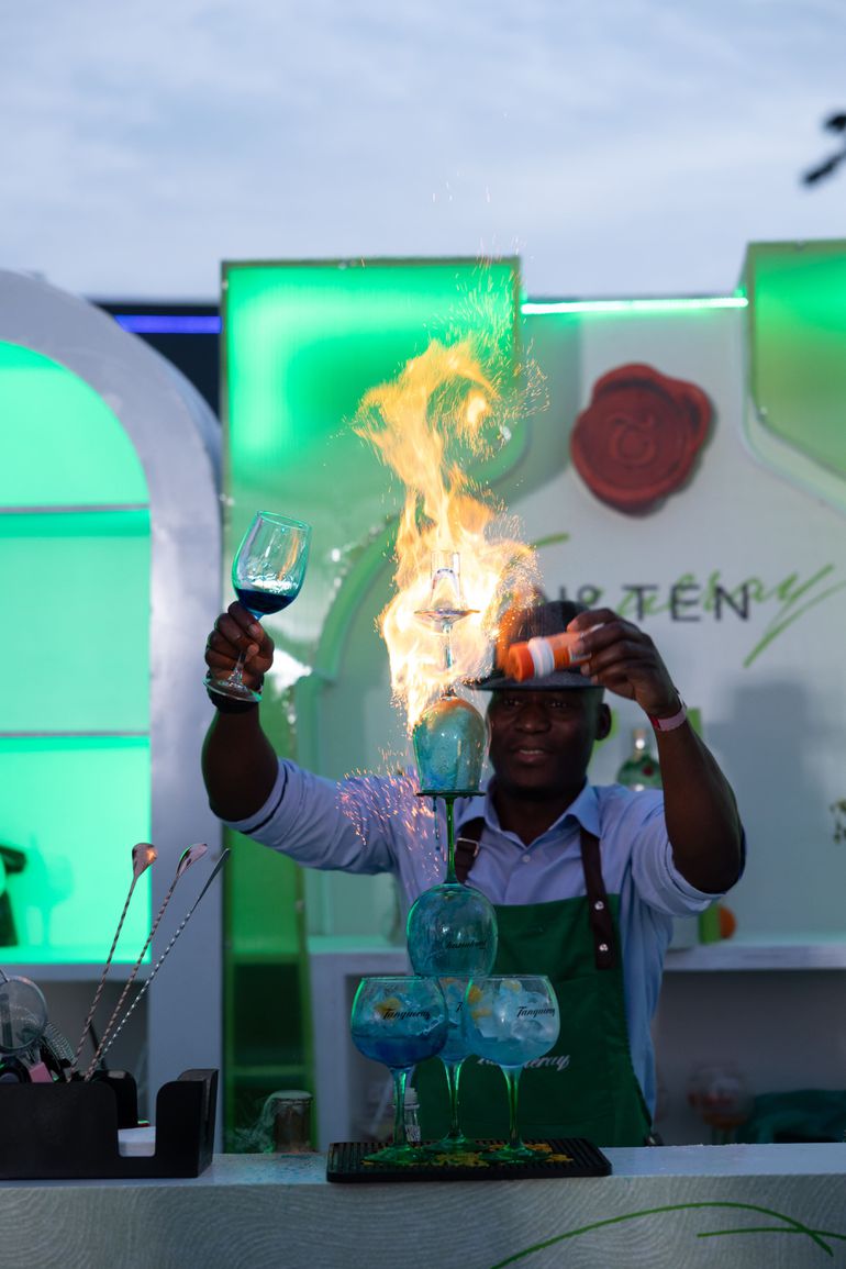 A key feature of the afternoon was a live cocktail mixology session. The bartender created a visual spectacle using fire and ice, demonstrating the craft behind the Tanqueray creations.