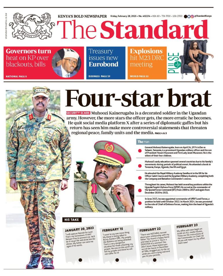 Days later, the Standard paper appeared to change tone, publishing a more flattering story of Gen Muhoozi, highlighting his military accomplishments.