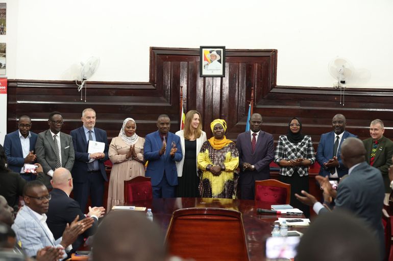 The signing ceremony, held at the Mayor’s Parlor, brought together key dignitaries, including Minister for Kampala Hajjat Minsa Kabanda, State Minister Kabuye Kyofatogabye, KCCA Executive Director Hajjat Sharifah Buzeki, Kampala Lord Mayor Erias Lukwago, and the Deputy British High Commissioner to Uganda, Tiffany Kirlew.