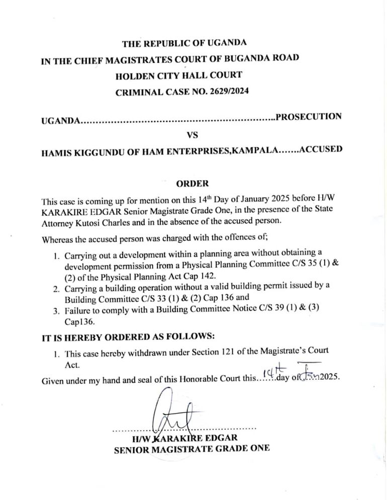 Additionally, the KCCA Magistrate Court had dismissed the charges Lukwago referred to on 14 January 2025, noting that the case was wrongly filed against Kiggundu personally rather than his company—contradicting the legal principle of limited liability.