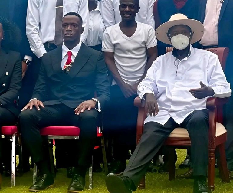 The photo, taken during President Museveni's visit to the university on Tuesday, April 8, showed Ssentamu and other members of the student guild seated beside the president during the launch of the 2025 Makerere Research and Innovation Week at the main campus's Freedom Square.