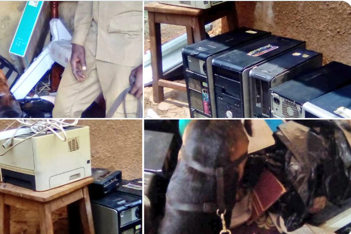 These included electrical wire cables and extensions, five CPUs, a Dell desktop computer, two office chairs and a printer. Police also recovered six black Dell projectors, a cupboard, a hard disk, gloves marked Makerere University, a curtain frame, a projector screen and a laptop.