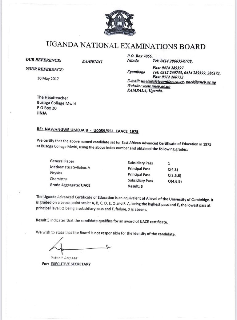 Following an online exhibition on Makerere University championed by Agora, a non-profit organisation advocating for public accountability, the university's Vice-Chancellor, Prof. Barnabas Nawangwe, has taken to X to share his academic results, tracing his journey from primary school to becoming a professor.